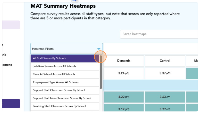 9. Click on the drop down arrow to view all saved heatmaps and select the one you want to view/download.